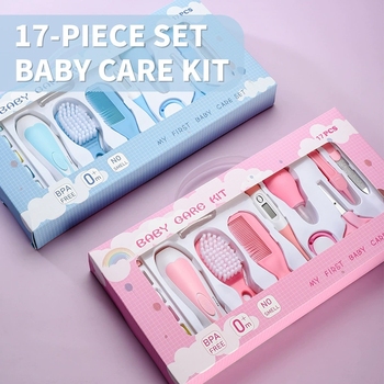 Kit per la cura del bambino portatile da 17 pezzi Set tagliaunghie pettine e spazzola per la cura orale per 0-12 mesi